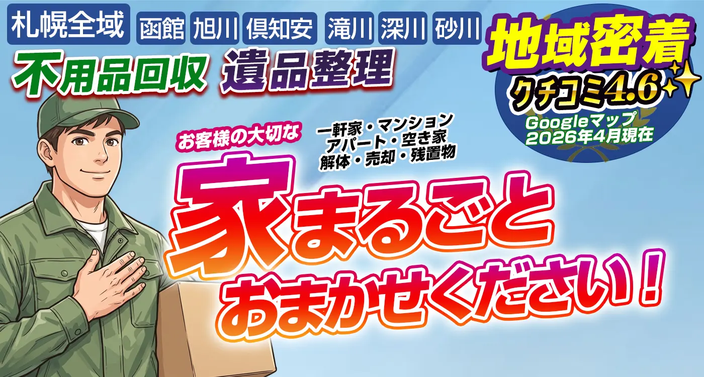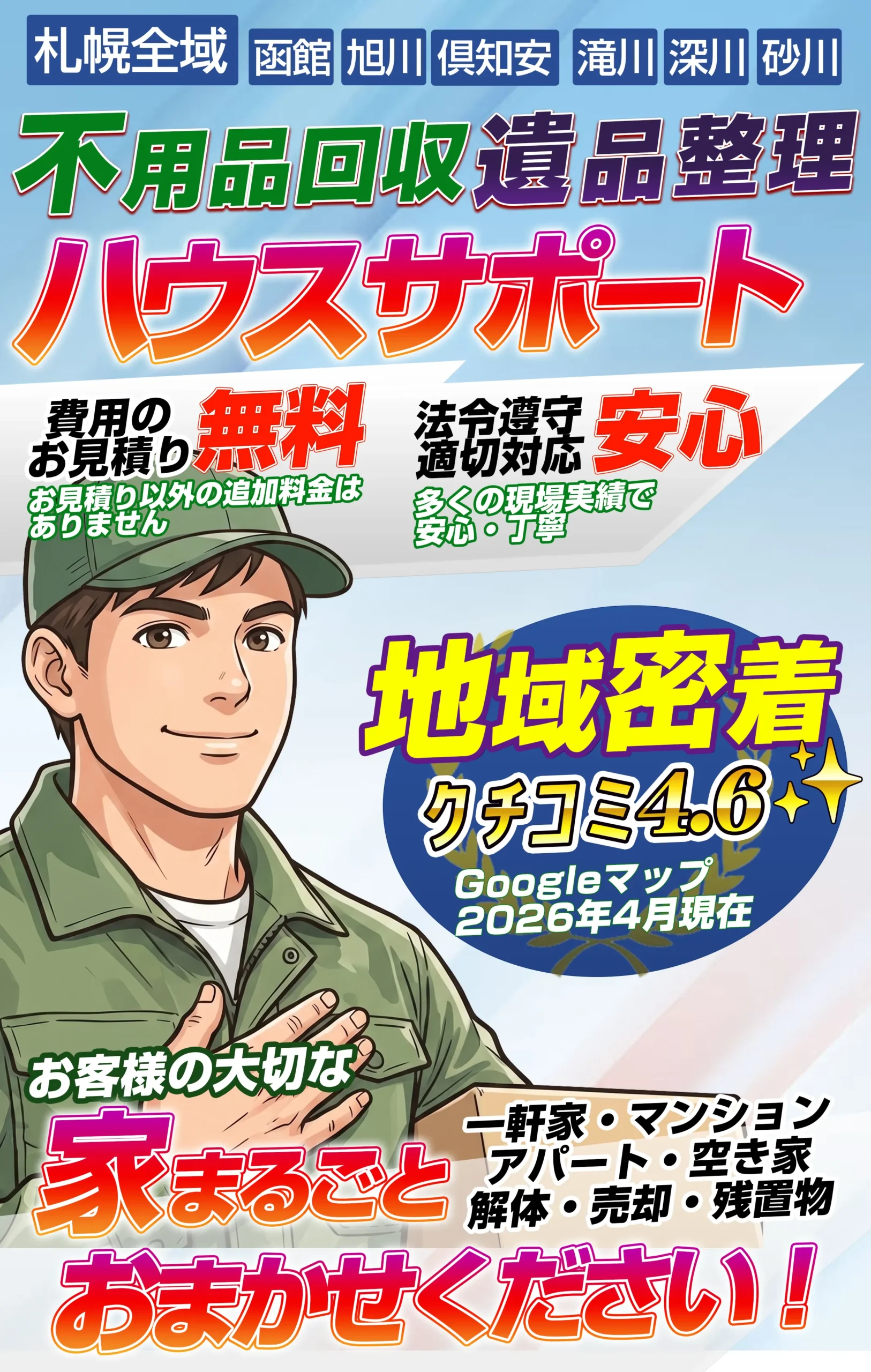 札幌の伏古にある祖父の家の遺品整理をおねがいしました。LINEで相談できるのでとても楽でした。